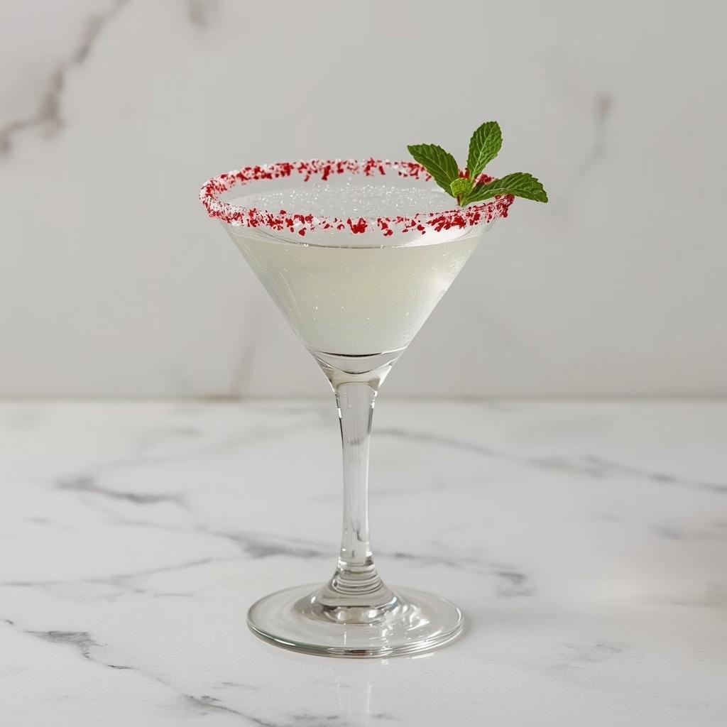 A crisp, wintry martini with cool peppermint and a whisper of white chocolate, finished with a candy cane rim. It’s festive, elegant, and decidedly adult.