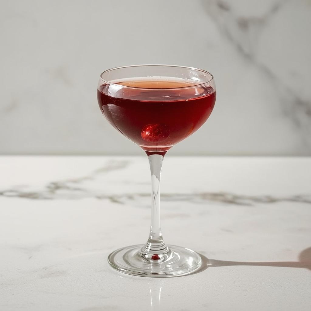 A Manhattan descendant that swaps classic sweetness for a darker cherry-bitter profile. Rye’s spice leads, a robust sweet vermouth tightens the mid-palate, and maraschino liqueur threads a dry cherry note through the finish.
